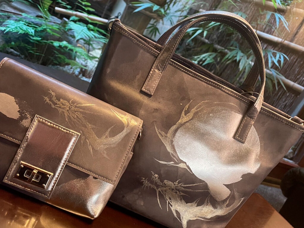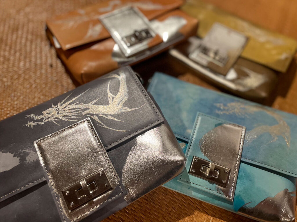 こちらのバッグは、弊社代表が竜み絵の象徴でもある竜を、皮革素材の表情にあわせ一つ一つのバッグへ個性豊かに直筆で描き上げた、世界に一つだけの特別な作品となっています。
