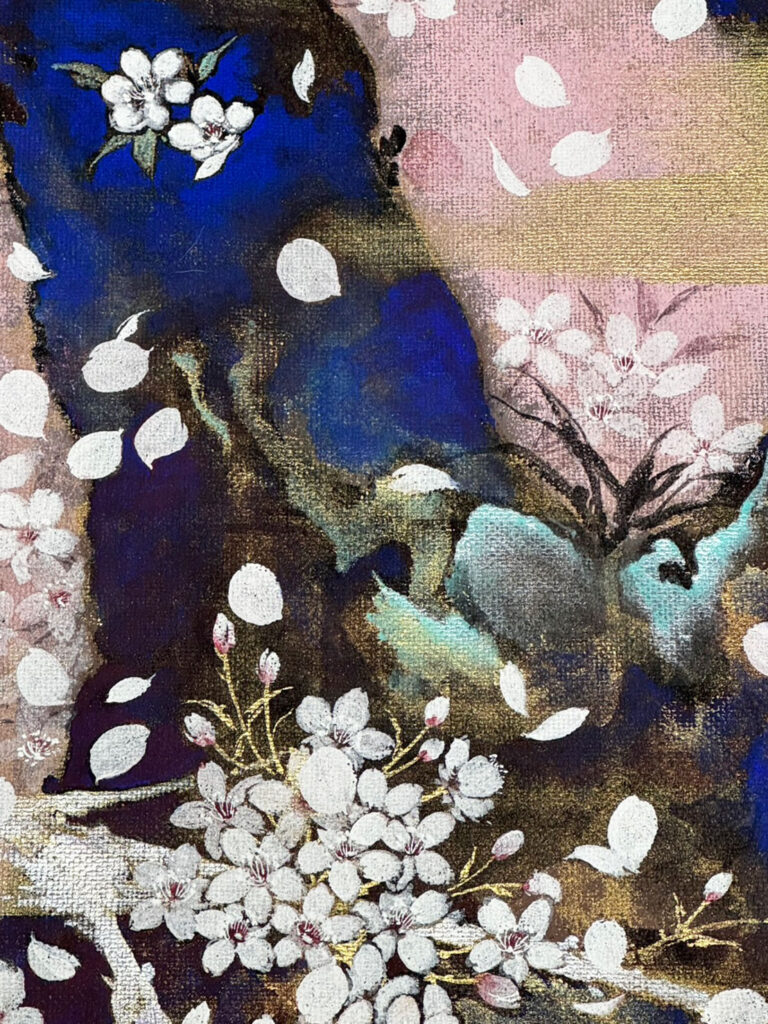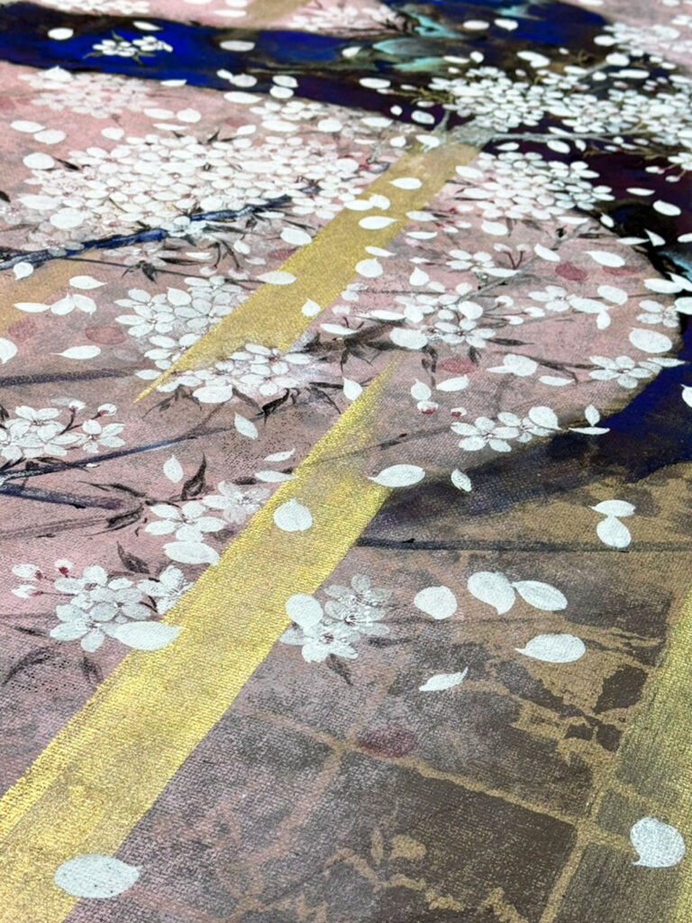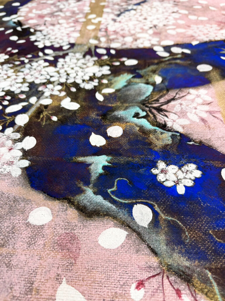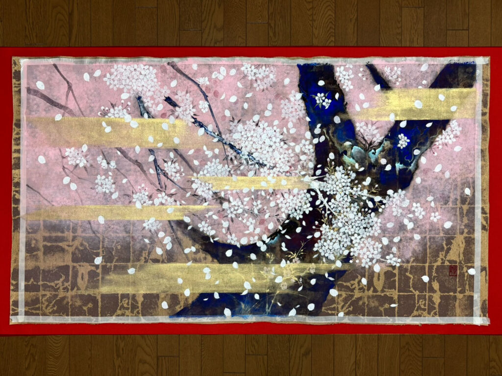 このたび、京都宇野株式会社様よりご依頼いただき、桜をテーマにした作品 《老艶》を制作いたしました。本作品はパネル仕立てとなり、京都・清水の朝日堂様へ納められます。